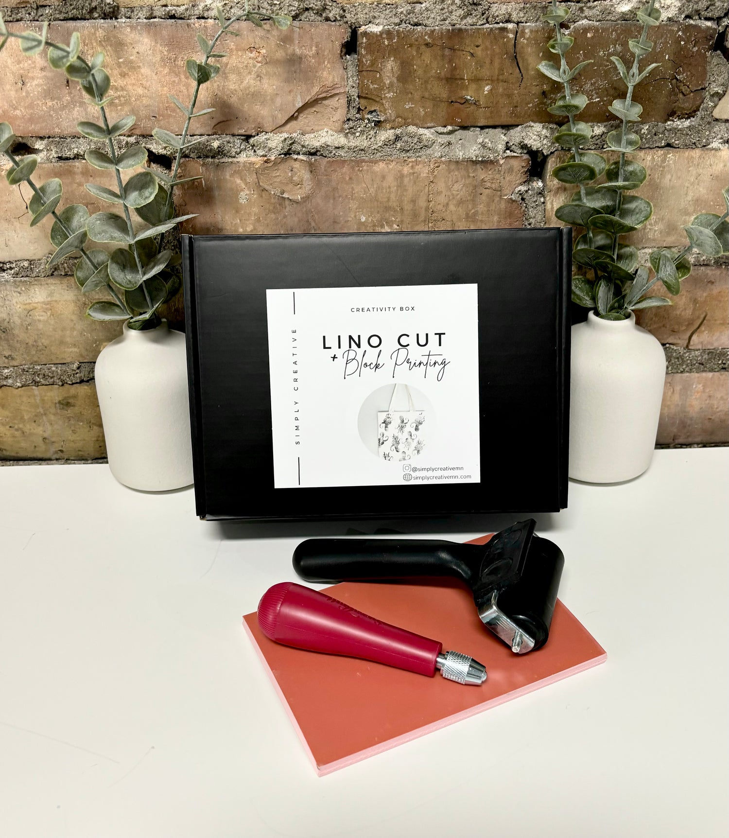 Block printing is one of the oldest printing methods. It is a method where you carve into a material and print an impression of the carved surface with ink. In this Creativity Box you are given all the tools and materials to make your own linoleum block print that you can print onto a canvas bag.