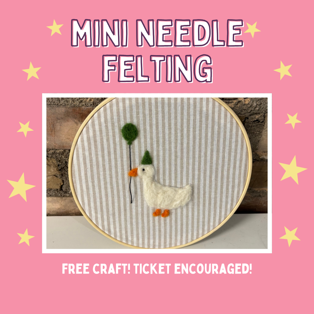 Try your hand at needle felting and create a mini masterpiece! This free craft is open for walk ins but we do encourage signing up for a free ticket as we will get busy.