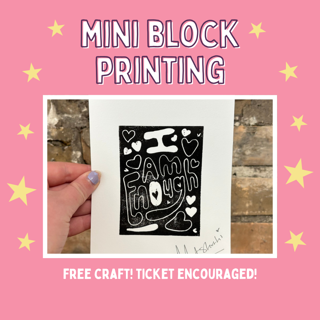 We will be offering a free mini block printing craft at our grand opening event! We recommend you sign up for a free ticket but we welcome walk ins too! Carve and print your own stamp!